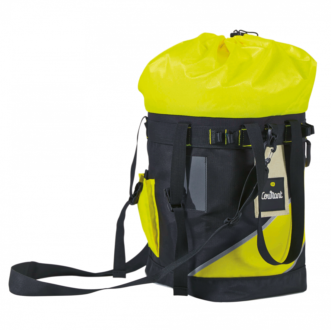 The Courant Host is a rope bucket style bag for easy storage and transportation of climbing or rigging ropes. It is equipped with stiffeners which maintain the bag's shape even when empty, allowing you to flake your rope into it with ease. The large ventilation mesh on the sides allows for your rope to dry out between jobs, making your life much less stinky.