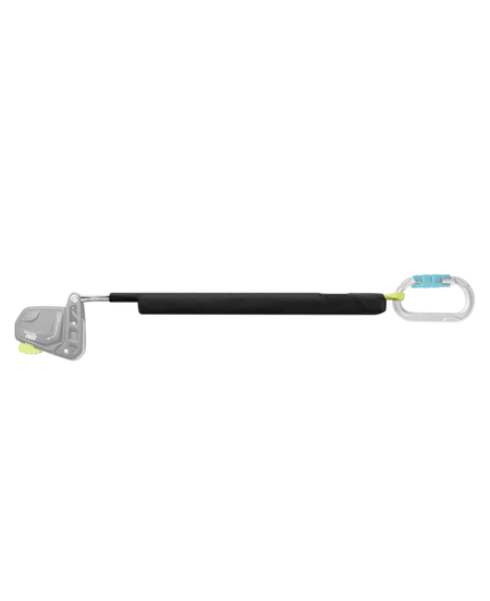 The long, narrow shock absorber for user loads of up to 220 kg reduces the impact force generated by a fall. The high load capacity enables users to work with heavy equipment and offers an additional reserve for rescue situations where users need to bear the weight of the person in need of assistance on their own system. The elongated design allows a slightly greater distance from the belay rope and therefore a clear working area. The window makes it possible to visually check the intactness of the energy absorber at any time.