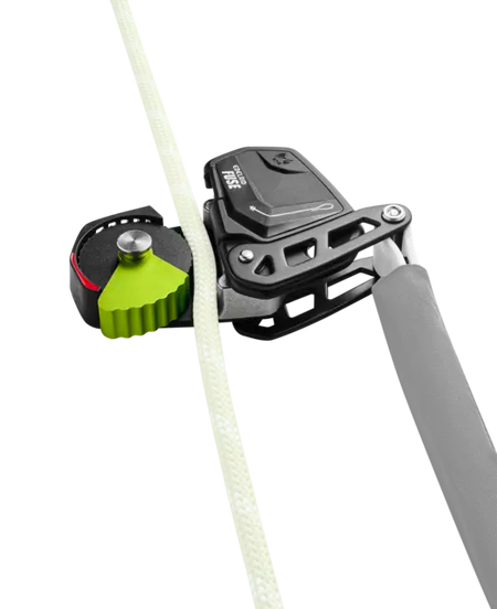 - Arrest function facilitates taut belaying in the working position and prevents sagging of ropes when it is exposed to wind