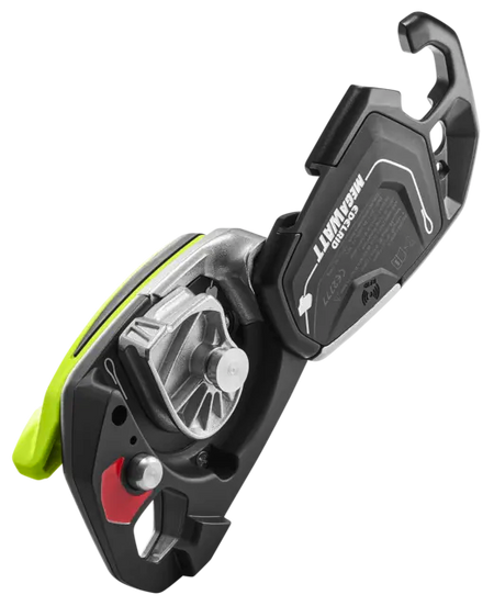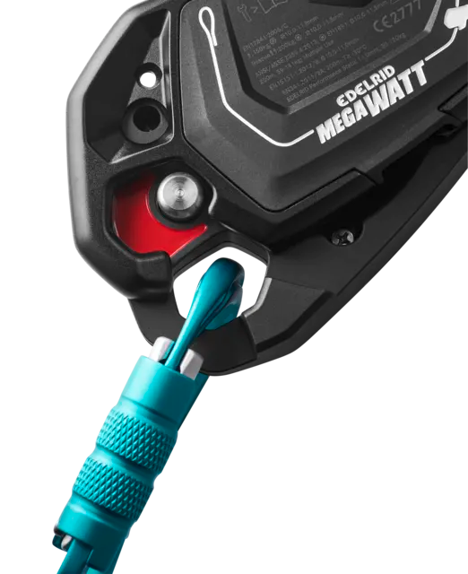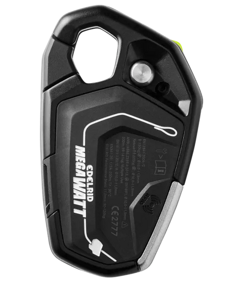MEGAWATT is a universal descender device for industrial climbers and rescue operations with a payload of up to 230 kg. The intelligent transmission mechanics of the descent lever facilitate a large operating range and exact adjustment of the speed at minimum force.