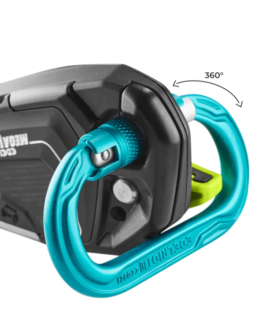 The risk of uncontrolled travel along the rope is reduced by the anti-panic function. It can also be triggered deliberately to reverse the sense of operation of the lever. This allows optimum handling in any application and position. All this makes the MEGAWATT the most versatile descender device in the market at a weight of only 495 g.