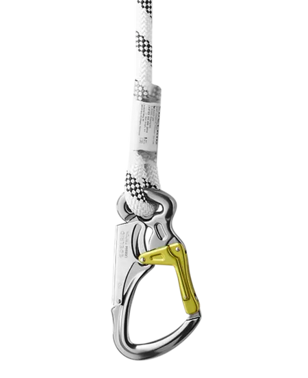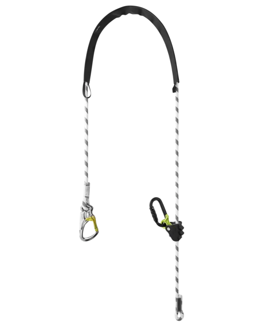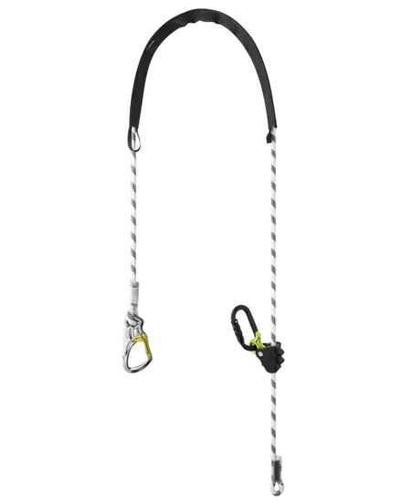 Adjustable lanyard with a 12 mm kernmantel rope for work positioning at height (in accordance with EN 358). The length of the OMBILIX ADJUST can be quickly and easily adjusted using a rope clamp.