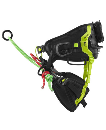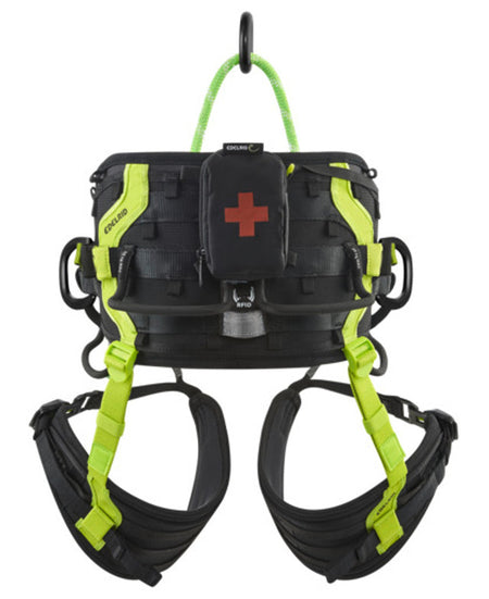A fully featured and highly customizable tree-care harness. With a variety of rope bridge configurations including the SRT BRIDGE which offers a close, secure, central attachment point for a more comfortable SRT ascent or when working off a choked anchor on a spar. When combined with the Vector Chest X harness, TreeRex and SRT Bridge form an EN 361 Fall protection system. The innovative 3D Vent Technology, in combination with the wide, semi-rigid padding, ensures unsurpassed comfort and breathability especially in hot weather. There are 4 large gear loops designed to accommodate large gear hooks like the SM Clip 3R or Rock Exotica Transporter, and 4 molded gear loops that protrude just enough to make for easy storage of carabiners, slings or other tools. The TREEREX is supplied pre-assembled with a single adjustable rope bridge in the lateral eyelets and an aluminum connecting ring, but comes with a second bridge, SRT attachment point, and first aid bag ready to be installed. Also compatible with Bungee Chest harness.