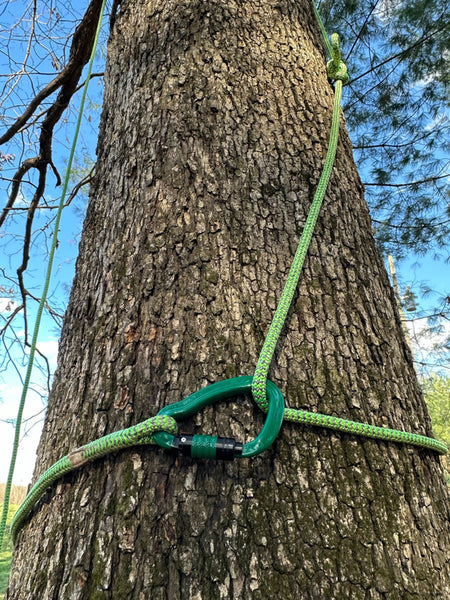 The Choker is a heavily modified HMS carabiner range from At Height UK. This carabiner is fully-rated with a 16kN gate but has been additionally tested in a Choke Hitch application to represent cross-loading in a real life scenario. As a result, these carabiners have been approved for use in a choke hitch application for rigging and life support with up to a 40kN cross load.