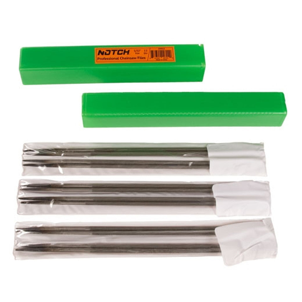 Notch's new line of chainsaw files are long lasting round files delivered in a reusable case. The classic spiral cut is perfect for quickly sharpening on the job and the different sizes are distinguished by color-coded stickers so you can keep them straight in your toolbox. Sold in packages of 12 with reusable hard box.