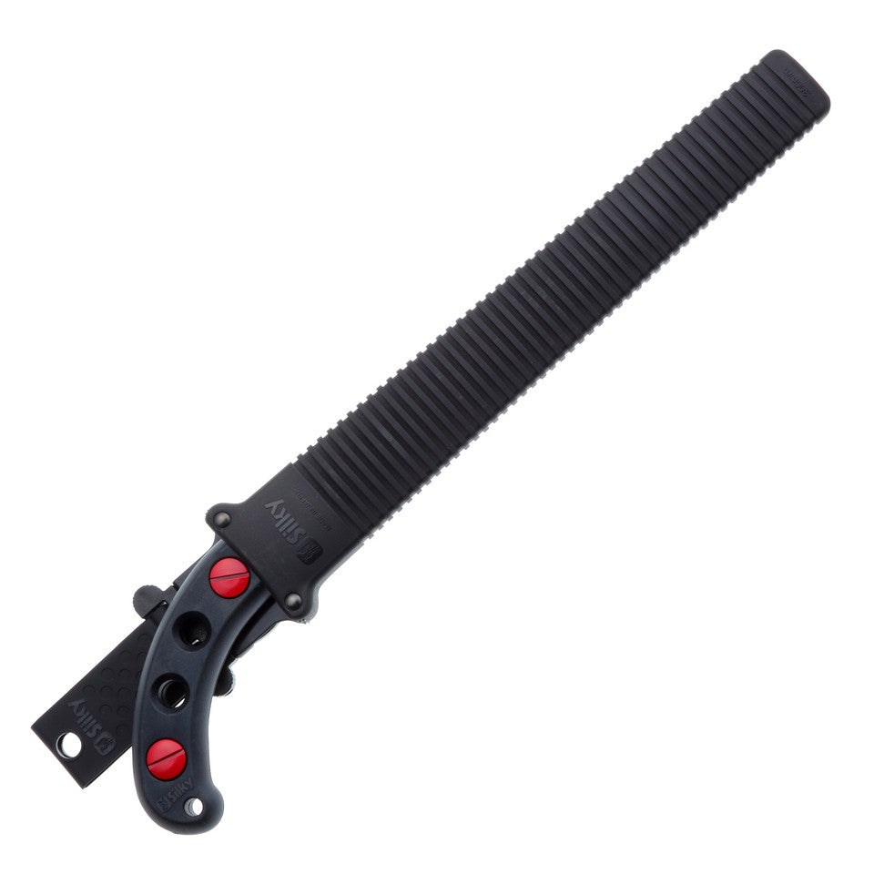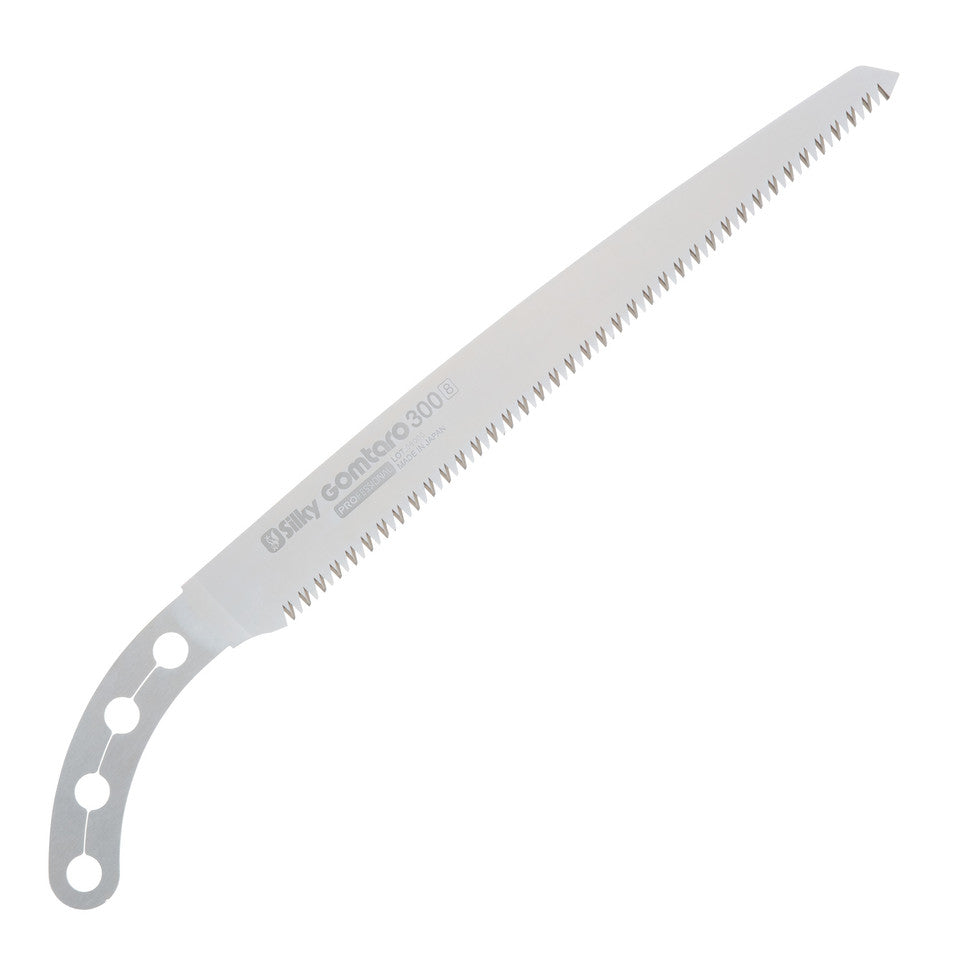 The Gomtaro 300mm Hand Saw from Silky is a beautifully balanced straight pruning saw with an 12", ultra-strong, mono-constructed blade. It features a rust-resistant, hard chrome-plated, taper-ground blade with an impulse-hardened non-set tooth design for greater cutting efficiency. Exceptional design, strength, and balance. Ideal for all pruning tasks. This new version features a notch on the handle that provides better grip. The notch locks into two rollers in the scabbard to keep your saw from falling out while you're in the tree.